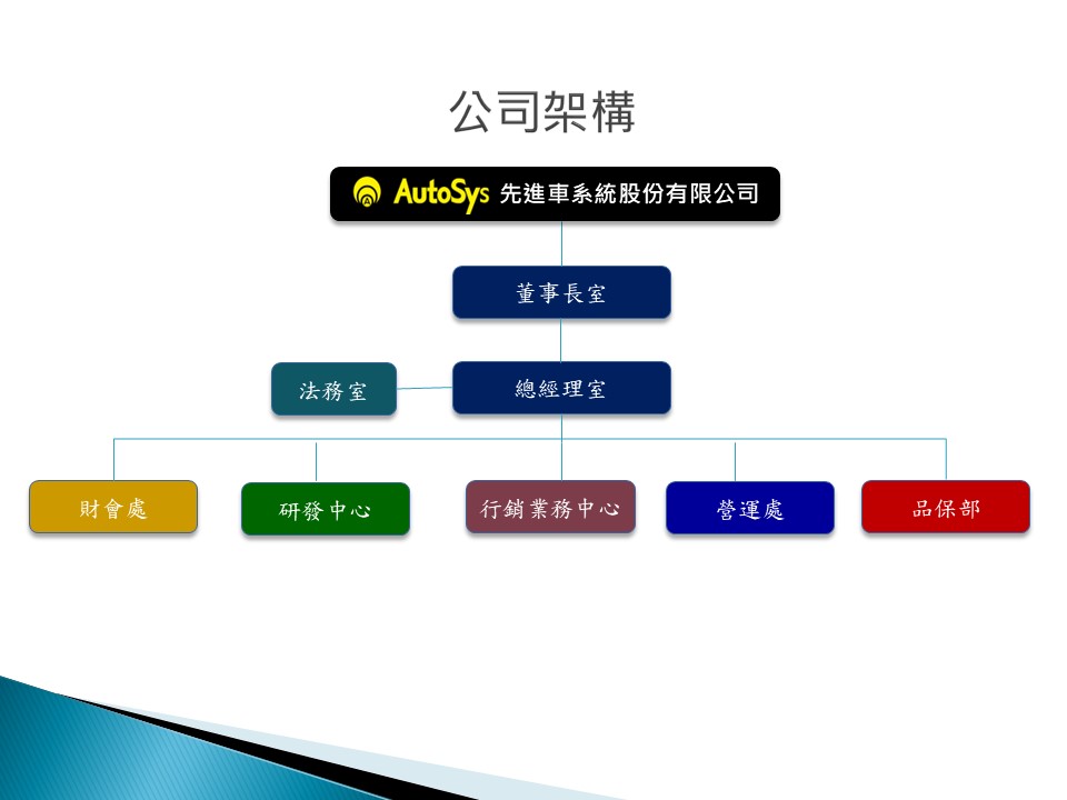 先進車系統股份有限公司成立於2018年,由英屬開曼群島商AutoSys Co., Ltd.全資成立, 目標成為汽車先進輔助駕駛系統(ADAS)與自動駕駛(ADV)的系統與解決方案領導廠商